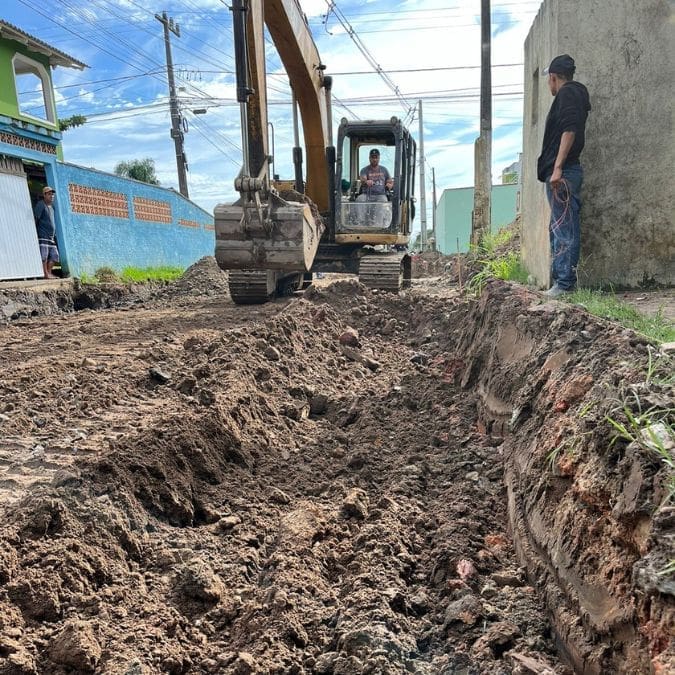 Drenagem (desvio de água de rio para outro) tubulação dupla de 150MM e repavimentação em paver.